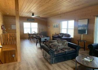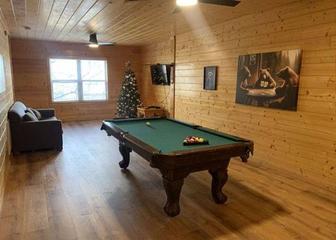 When it’s time for some friendly competition, the cabin’s game room features both a pool table and a foosball table, making it a favorite hangout for guests of all ages. Between the game tables, the comfortable sleeper sofa, and plenty of space to gather, the game room is perfect for creating memories that will last long after your trip ends.