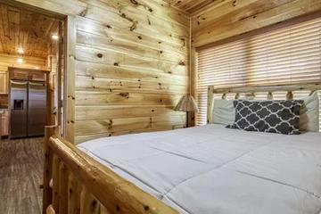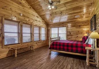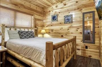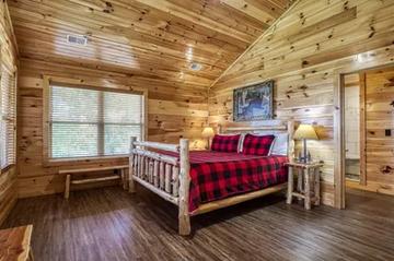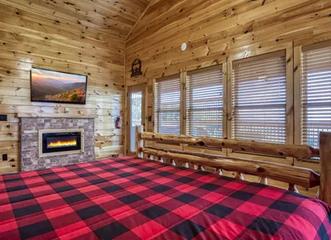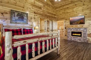 • Master Bedroom: Wake up surrounded by spectacular mountain views in the master bedroom. Featuring a king-size log bed, electric fireplace, and a 50-inch flat-screen TV, this room offers the ultimate in comfort and relaxation. The large windows allow you to take in the incredible scenery from the moment you open your eyes.
