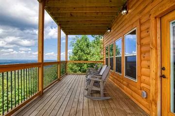 The outdoor spaces at Chasing Views are designed for relaxation, entertainment, and taking in the jaw-dropping mountain views. The cabin boasts two expansive decks, both of which provide awe-inspiring panoramas of the Smoky Mountains.