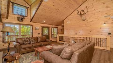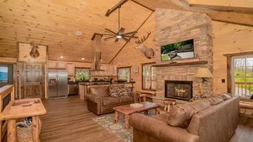 Experience the ultimate Smoky Mountain getaway at Kiss The Moon, a luxurious 2-story log cabin that offers an unforgettable vacation experience in Pigeon Forge and Gatlinburg, Tennessee. Perfectly situated in the scenic Wears Valley on Hatcher Mountain, this exquisite cabin provides panoramic views of the Smokies, making it the ideal retreat for families, friends, or couples looking for an escape to nature’s tranquility with all the comforts of modern luxury. Whether you're planning a relaxing weekend or an action-packed adventure, Kiss The Moon is just minutes away from the attractions of Pigeon Forge, Dollywood, and the Great Smoky Mountains National Park.