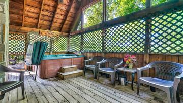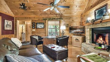 With two bedrooms, a sleeper sofa, and plenty of living space, Moonshine Mountain is perfect for a variety of travelers. Families will love being close to kid-friendly attractions like Soaky Mountain Water Park, Ripley’s Aquarium of the Smokies, and Dollywood. Couples will appreciate the romantic touches such as the fireplace-lit jacuzzi tub. Small groups of friends can use the cabin as a base for hiking, shopping, dining, or simply enjoying a relaxing weekend away.