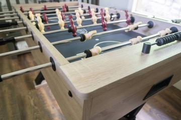 - Open loft with bunks, TV, and foosball table for added fun