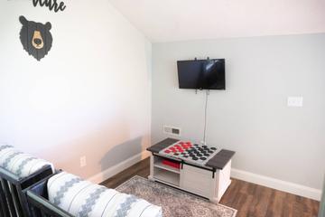 Inside, the chalet’s foosball table and loft entertainment area provide hours of fun for kids and adults alike. Stream your favorite shows, gather for family movie night, or challenge each other to a friendly game of foosball. This combination of comfort and play makes Mountain Escape Chalet an ideal choice for families looking for a well-rounded vacation rental.