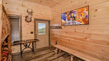 Experience the charm and luxury of Queen Bee, a stunning 5-bedroom (with the 5th bedroom in the ope loft area) nestled in the heart of the Smoky Mountains, just minutes from the scenic beauty of Gatlinburg and Pigeon Forge, Tennessee. This expansive 3,100-square-foot retreat combines modern amenities with the rustic appeal of a log cabin, creating the perfect getaway for families and groups. With breathtaking mountain views, a spacious game room, home theater, hot tub, and an open loft bedroom, Queen Bee offers everything you need for a memorable vacation.