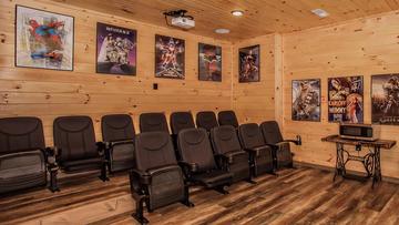 Adjacent to the game room is the home theater, which offers a true cinematic experience with its projector, large screen, and comfortable cinema-style seating. Enjoy your favorite movies in high-definition with excellent sound, and don’t forget to take advantage of the microwave for some freshly popped popcorn!