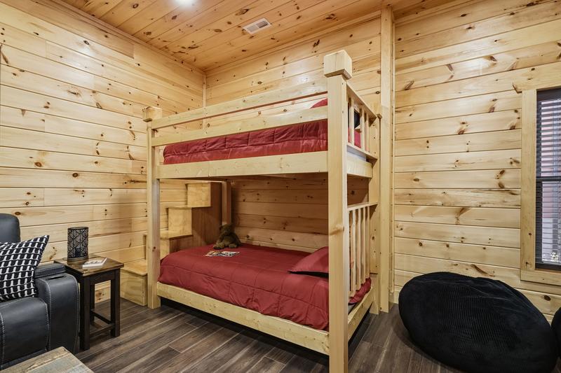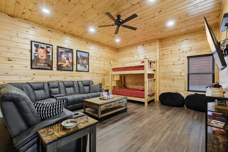 For movie lovers, the theater room is a dream come true. Complete with cozy seating and a Twin bunk bed, it’s the perfect place for a family movie night or a late-night watch party with friends. Grab some popcorn, dim the lights, and settle in for your favorite films—all from the comfort of your private mountain escape.