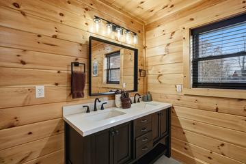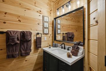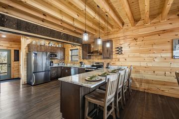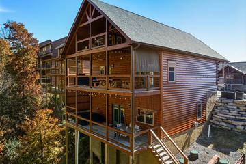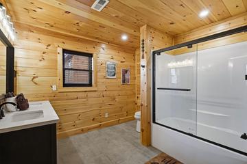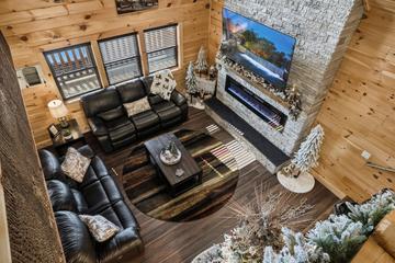 RECEIVE 50% DISCOUNT TO THE RESORT ONSITE WAHOO ZIP-LINE: Nestled in the scenic beauty of the Smoky Mountains, Rustic Roots is a stunning three-bedroom cabin in the heart of the Grand View Resort, perfectly positioned between the vibrant attractions of Pigeon Forge and the natural beauty of Gatlinburg, Tennessee. This upscale mountain retreat is more than just a place to stay—it's a luxurious home base for your next unforgettable Smoky Mountain getaway. With breathtaking mountain views, upscale amenities, and room for the whole family or a group of friends, Rustic Roots offers the perfect blend of rustic charm and modern comfort.