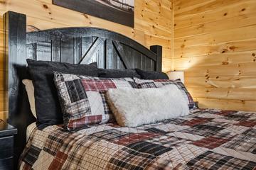 Rustic Roots features three beautifully appointed King suites, each designed to offer guests a restful and private space to unwind after a day of exploring the nearby trails, attractions, and entertainment. These suites provide cozy yet spacious accommodations, and each comes with its own full bathroom, offering added convenience and comfort for every guest. Whether you’re traveling as a family, a group of couples, or with friends, everyone will have their own personal sanctuary to relax and recharge.