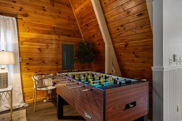 For fun indoors, the cabin includes a foosball table—popular for families and groups looking for a little friendly competition. Whether it’s raining, snowing, or you simply want to hang out at the cabin, you’ll have built-in entertainment that helps make your stay both fun and memorable.