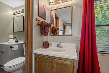 First, let me just say that everything was very nice. The apartment was well-equipped as far as the kitchen was concerned. The rest was pretty nice. The outside looks great. There are brand new decks that were nice but hot in the summer. There is no shade on them at all. The grill was fantastic. We used it every night. The house is older, and the inside needs an update. The bathrooms are dated, and the floors squeak. The bottom floor has a nice pool table, but the seating around it leaves much to be desired. Also, a very nice large-screen TV is unusable because the seating is uncomfortable. It could work if you were playing pool and watching the game, but not for much else. There are no TVs in the bedrooms, just the two large-screen TVs. It was nice to be able to log into Roku and access our subscription services. The clubhouses are 8-15 minutes away on the very windy roads of the mountains. Make sure you take the passes. There is no walking the streets. It was great to be able to take our dogs, however, there is not good place to take them out for a walk. There is a bear around the house; it was fun to watch out for, but make sure you watch out for it!! One day it climbed the trees outside the house and lounged while eating berries. Overall, it was a good experience!John K – 07/03/2024