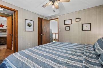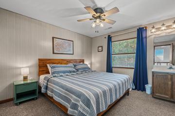 One of the best One of the few places I've stayed that I would rent again. This is it. Drive up is not bad at all considering others that were far worse. None of our party had any complaints at all. Plenty of room and if you want to see bears, at least our week, we saw them every day, either on our porch, on the street or on the road back down hill. The only complaint I had was the fact that though it is pet friendly, be advised that there is no grassy area on your lot. You have to walk to up one of two hills to get any potty area. You have to watch out for bears as I mentioned earlier, we saw them every day and the big male left his muddy footprints on both of our cars. Parking for 3 cars. Note that the headline description says 3bd/3ba but there are 4 bedrooms all with king beds. Plenty of room. This has an amazing view. What more can I say. Would definitely rent again as all members said the same thing.Gary F. – 05/06/2024