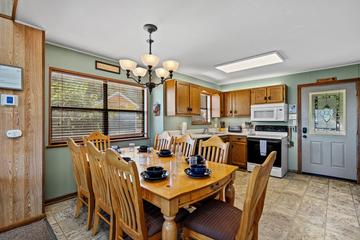 The chalet's game room offers hours of entertainment with a full-size pool table, flat panel TV, and ample seating for everyone to unwind and enjoy. And when it's time to refuel, fire up the gas grill for a mouthwatering barbecue on the deck, or savor a home-cooked meal in the dining area overlooking the rolling hills of the Smokies.